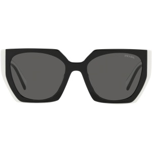 Prada güneş gözlüğü modeli PR15WS, siyah ve talk çerçeve çeşidi, koyu gri camlı renk kodu 09Q5S0. Prada, İtalyan kültürünün ve geleneğinin en iyisini temsil eder. Ayrıntılara ve yeni trendlere büyük önem veren moda ve lüks eşya endüstrilerinde en yenilikçi, prestijli ve yaygın olarak tanınan markalardan biridir.
